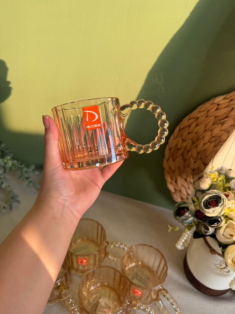لیوان دسته مرواریدی دلی طرح خط دار شامپاینی جعبه 6 عددی