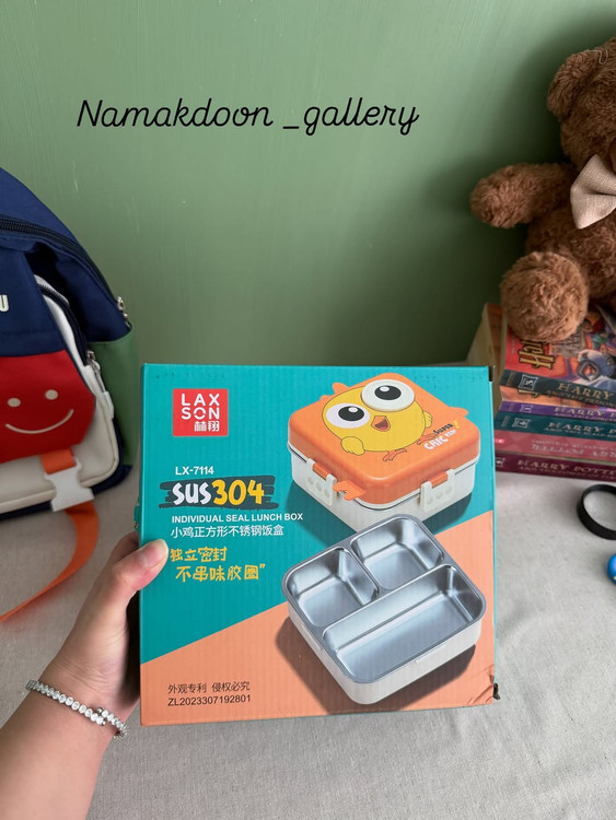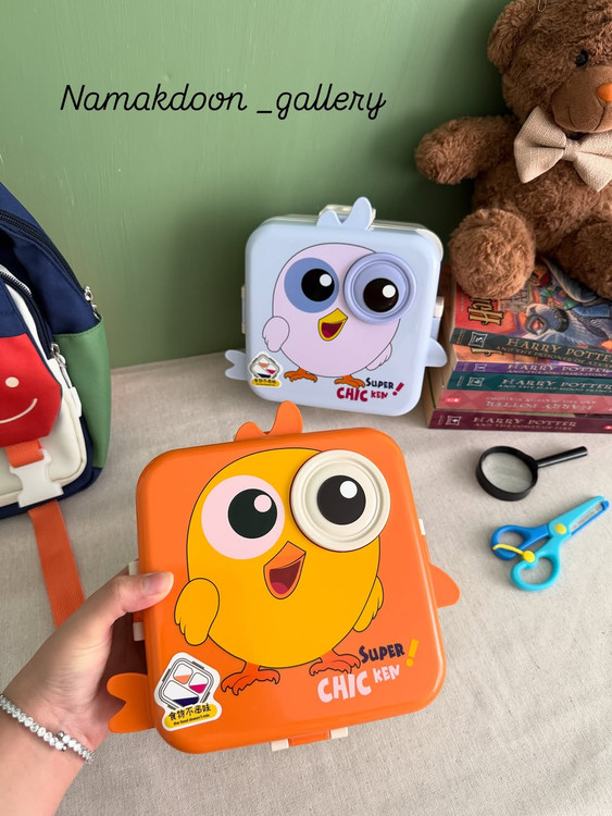 فرق داره!!! بله، این لانچ باکسمون مدلش لکس سان هست و داخلش استیله و حتی قاشقشم استیله تازه جعبه هم داره استیلش ۳۰۴ هست و جدا هم میشه دقیقا مثل مدل پلاستیکیش طبق نوشته ی روش به هیچ عنوان مواد غذایی داخلش مخلوط نمیشن میدونی که همه ی محصولاتمون هم وارداتی هستند ظرف غذای طرح جوجه مدل استیل در دو رنگ نارنجی و آبی یخی موجود