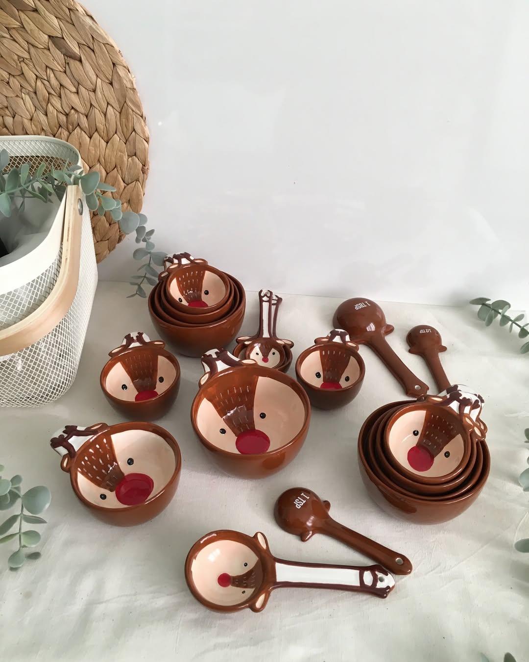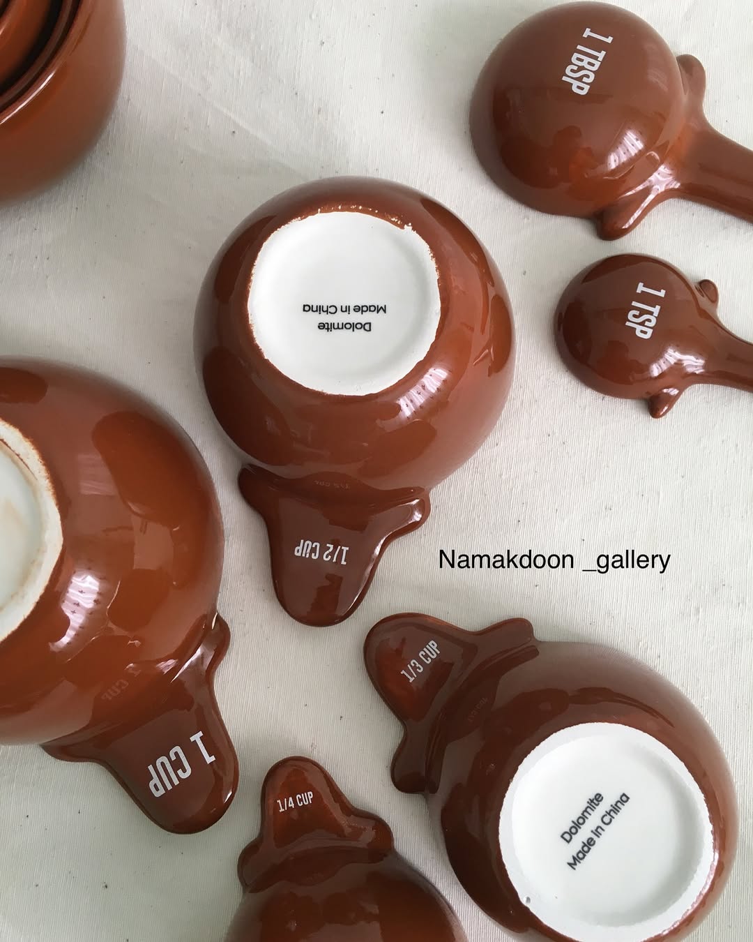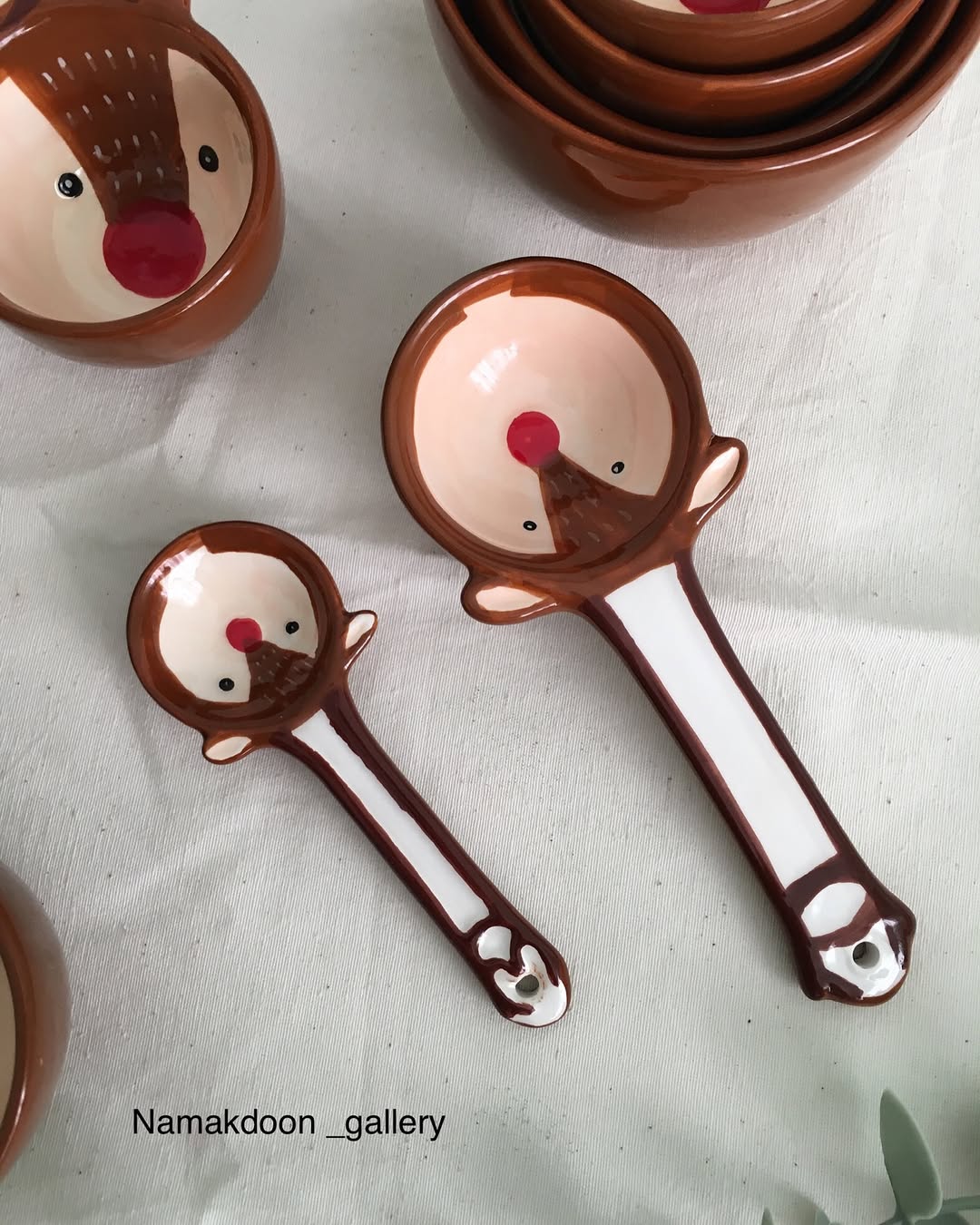پیمانه شش تکه گوزن شامل چهار عدد پیمانه پیاله مانند و دو قاشق (سایز استاندارد قاشق غذاخوری و قاشق چای خوری) کار وارداتی هستند ندازشون پشتشون نوشته شده برای اندازه گیری کارتون راحته جنسشون سرامیکیه ست پنج تایی مدل پیاله از ست دوتایی قاشق ها جداست ..